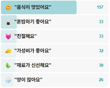 등록된 평가를 보면, '음식이 맛있어요, 혼밥하기 좋아요, 친절해요' 등의 평가가 잇따르고 있었습니다.