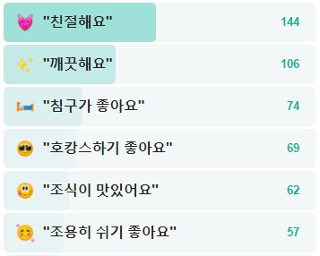 방문자 후기를 보면 친절해요, 깨끗해요, 침구가 좋아요, 호캉스하기 좋아요, 조식이 맛있어요 등의 평가가 많습니다.