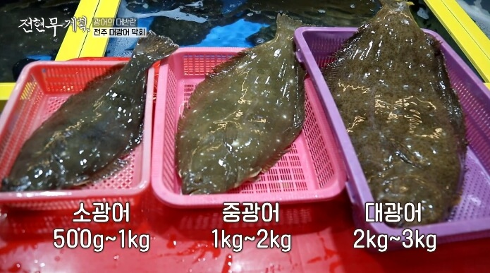 광어는 소광어, 중광어, 대광어로 나뉘는데 대광어는 길이 50cm 이상을 가리킨다고 합니다.