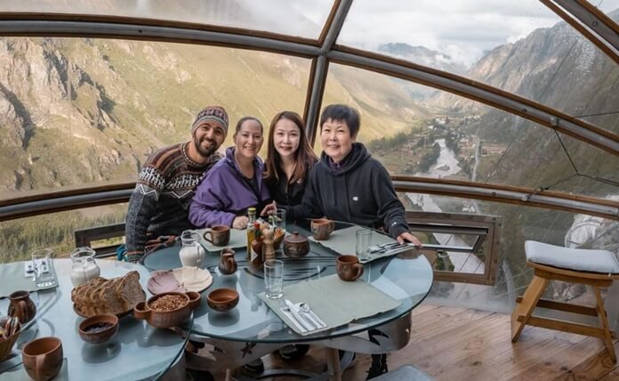 페루 스카이롯지는 페루 쿠스코의 Sacred Valley에 위치한 절벽에 매달린 투명한 호텔입니다.
