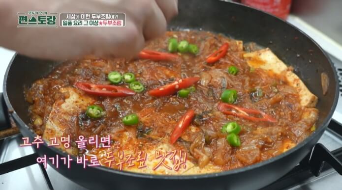 이제 밥 위에 올려먹으면 세상에 둘도 없는 편스토랑 어남선생의 두부조림이 완성되었습니다.