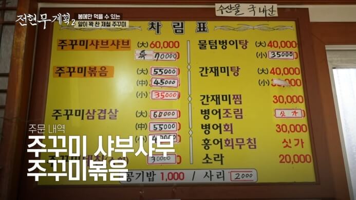 ✔ 쭈꾸미샤브샤브 - 대 60,000원 / 특 70,000원